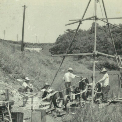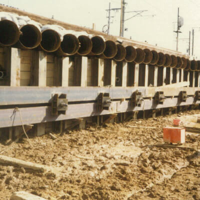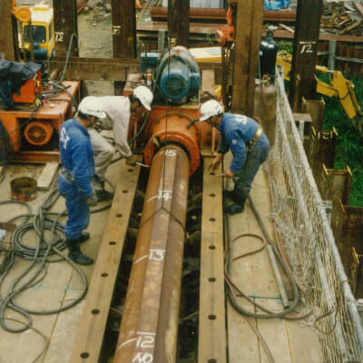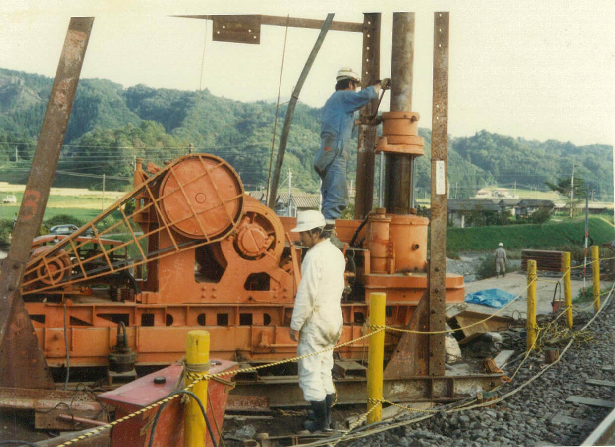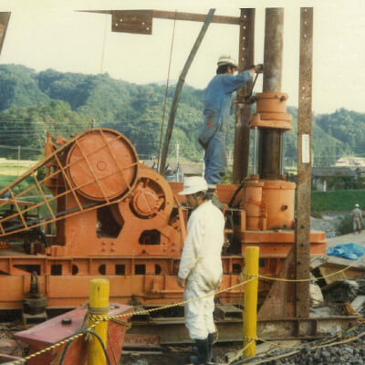 「会社の発展には、金よりも技術が必要だ」という瀬谷氏の信念のもと、常磐ボーリングの全能力をあげて研究・開発が続けられ、昭和56年、発明新案の特許を取るに至りました。SH工法の優秀性は広く認められ、現在も推進工事の現場において威力を発揮しています。